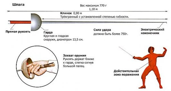 - Укол шпагой можно наносить в любую часть тела кроме затылка (из-за безопасности спортсмена).