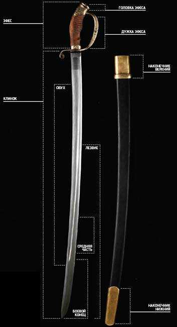 Для него обычно изготавливали деревянные ножны, сверху обтянутые кожей и имевшие специальные кольца для ношения на портупее. Еще следует отметить, что особенностью шашки являлось то, что ее всегда носили лезвием вверх.