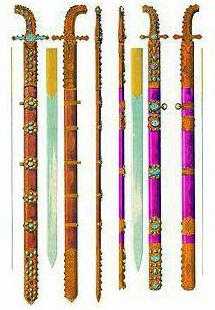 Сходное по конструкции и внешнему виду клинковое оружие имело широкое распространение в странах Восточной и Центральной Азии. В XIII-XIV веке им были вооружены татаро-монгольские полчища, совершавшие свои кровавые набеги и державшие в повиновении значительную часть древней Руси. Их палаши имели одностороннюю заточку, что создавало воину определённое преимущество в конном бою ввиду меньшего веса оружия. Кроме того, они были проще в изготовлении, а, соответственно, и дешевле.