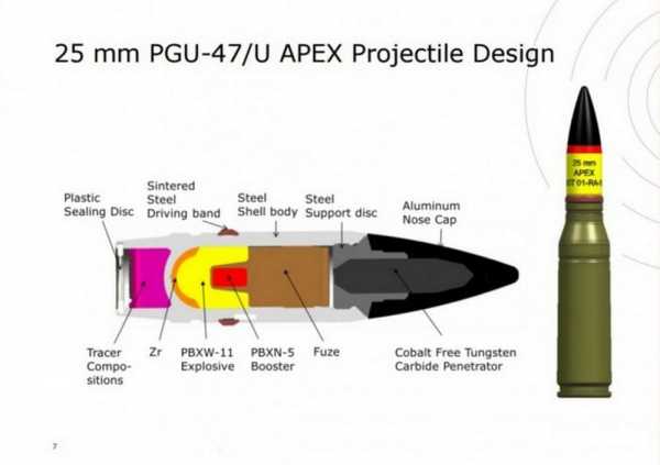 на толстые стенки корпуса снаряда.