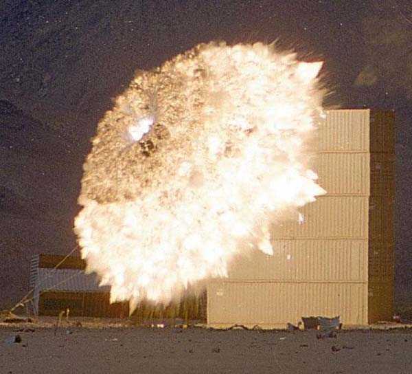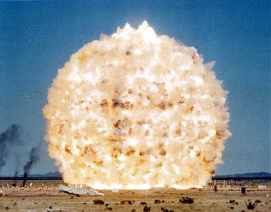 м. Через 125 милисекунд это облако подрывается несколькими детонаторами. Образующаяся ударная волна имеет по фронту избыточное давление 2 100 000 Па. Для сравнения — для создания такого давления