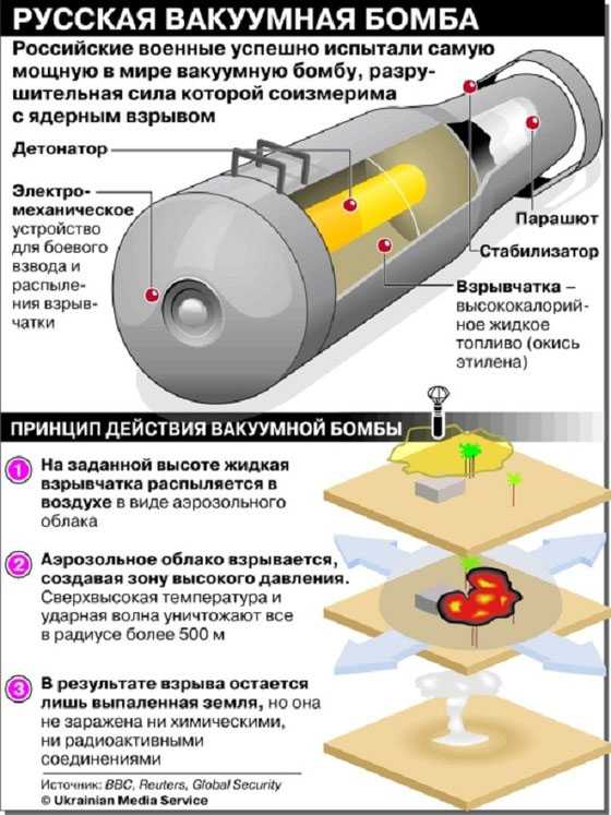 Нужно отметить, что Россия находится в числе государств, имеющих наиболее продвинутые наработки в сфере создания оружия объемного взрыва. Вакуумная бомба повышенной мощности, испытанная в 2007 году, – яркое подтверждение этому факту.