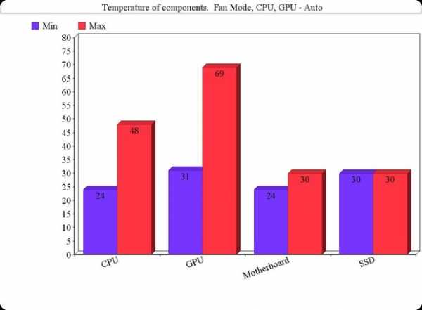 Ну и третий тест, 2400 RPM, по максимуму, в биос 100 процентов не ставится. Здесь гул вентиляторов стоит мощный, перекрывая даже шум охлаждения видеокарты под нагрузкой.