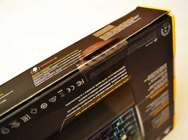 Стоит сразу отметить, что упаковка компании Corsair претерпела не существенные, но явно заметные изменения. Хотя коробка выглядит довольно обыденно и выполнена из плотного картона, она изменилась в оформлении. Фирменные черно-желтые тона остались как прежде, но теперь само изображение манипулятора выполнено на ярком желтом фоне, что явно выделяет его и делает более заметным среди аналогичных товаров.