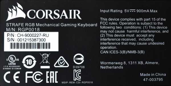 - Программное обеспечение – да, Corsair Utility Engine (CUE) Software
