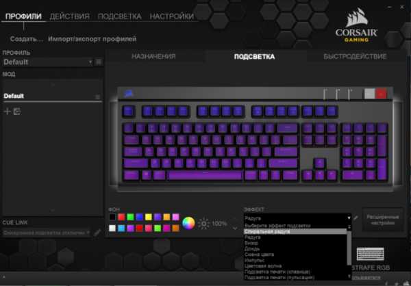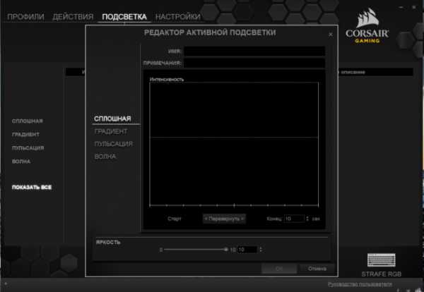 А вот возможности подсветки очень даже радуют. Имеется три типа яркости подсветки и вариант настройки подсветки только необходимых клавиш. То есть печатаем текст — выделяем только буквы и цифры, Shift+Enter; играем — выделяем WASD и все необходимые в игре клавиши. Красота да и только!