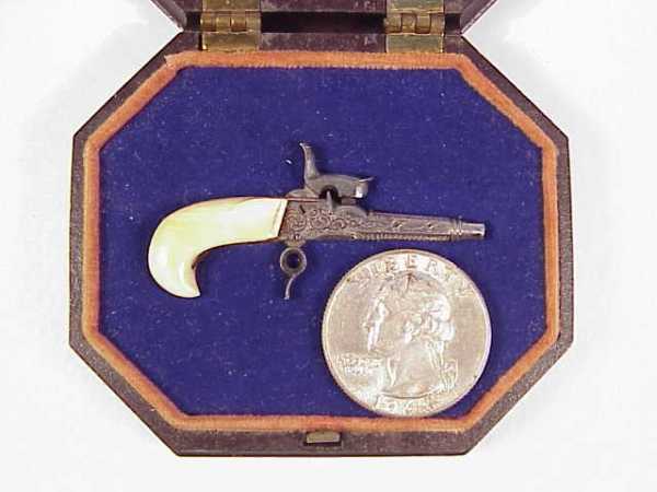 Оружие специально для дам начали выпускать еще в каменном веке. Это в основном были слегка уменьшенные копии мужского оружия. Но уменьшенные копии пистолетов стали и чисто мужским оружием. Например, в девятнадцатом веке в Североамериканских штатах стали очень популярны так называемые жилетные пистолеты. Пистолеты умещавшиеся в жилетных кармашках. Сначала это были однозарядные кремневые (потом капсюльные) пистолеты заряжающиеся с дула. В америке подобные пистолеты получили название «Диринжеры». В последствии Диринжеры стали казнозарядными, одно, двух и четырехствольными, то есть 1, 2-4 зарядными. Калибр мог быть любым, от 4 до 12,5 мм. Они были очень популярны и у мужчин, и у женщин.
