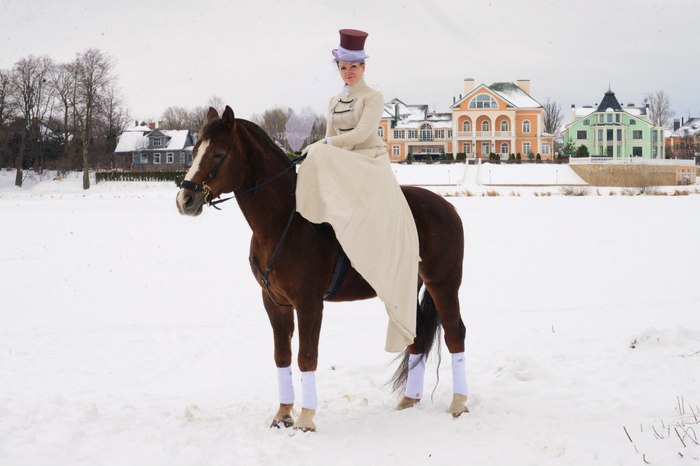 Первый. Вариации на тему дневного закрытого платья соответствующей эпохи. Знаменитая брюлловская «Всадница» именно в таком варианте амазонки.