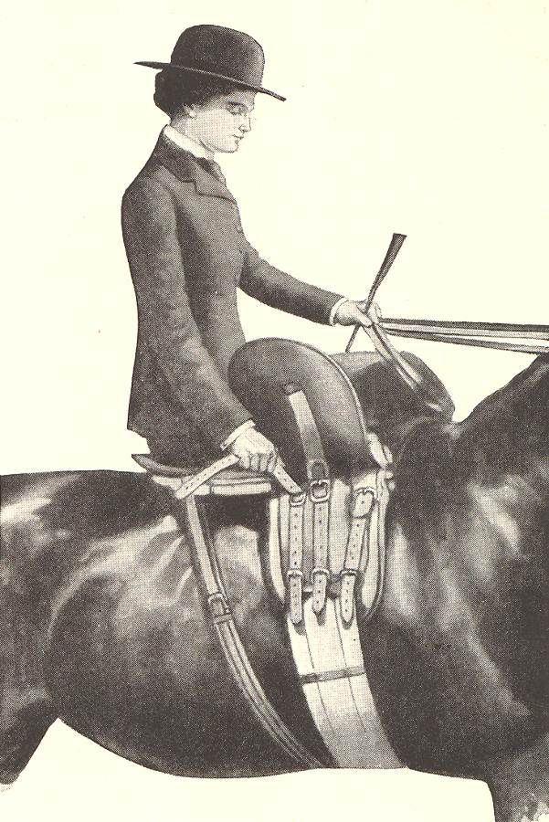 Именно это усовершенствование сообщило дамскому седлу его сегодняшнюю безопасность и позволило дамам легче преодолевать препятствия.