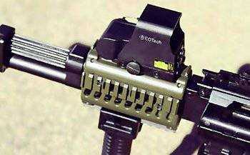 располагался на передней части крышки ствольной коробки. Для применения на скорострельном оружии, призванном буквально поливать противника пулями, это было нормально. Крышка ствольной коробки при стрельбе постоянно двигалась и затрудняла прицельный огонь, что, однако, компенсировалось разлетом пуль. Для самозарядного оружия, продающегося в рыночных условиях, это было неприемлемо. Поэтому парни из DS Arms перенесли прицел с крышки ствольной коробки на цевье. Да, за счет переноса и уменьшения длины ствола уменьшилась длина прицельной линии при использовании открытого прицела. Однако коллиматорное прицельное устройство от такого переноса не ухудшило свои качества. Что касается передней рукоятки, то это не только дань моде последних лет. Она одновременно выполняет две функции. При стрельбе с рук стрелку удобнее держать RPD-Carbine, а в случае необходимости из средней части рукоятки он может вынуть раскладную двуногую сошку. Эдакая универсализация «обвеса» для стрельбы из разных положений. Наконец, в DS Arms сделали немного более удобным боепитание пулемета-самозарядной винтовки. Неразъемная лента на 100 патронов RPD v.2.0 хранится не в металлическом или пластиковом контейнере, а в мешке особой формы, сшитом из синтетической ткани. Помимо выигрыша в весе это уменьшило производимый лентой шум.
