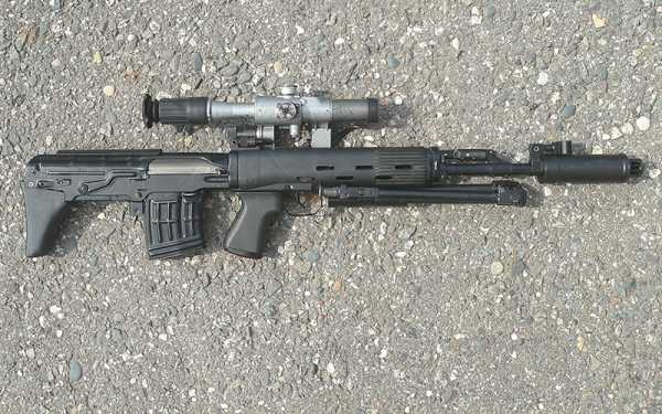 СВД с прибором бесшумной стрельбы, хотя в данном случае речь идет скорее о беспламенной стрельбе