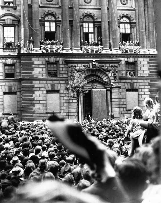 Тысячи людей вышли на улицы городов, чтобы лично услышать слова, о которых мечталось четыре страшных года войны. Тяжелые лишения, потери, горе и боль остались позади, оставив в сердце незаживающую рану. Многие так и не дождались своих близких и друзей с фронтов. Этот великий день навсегда останется в памяти народа-победителя как самый трогательный момент в жизни. «Праздник со слезами на глазах» — именно таким он и был.