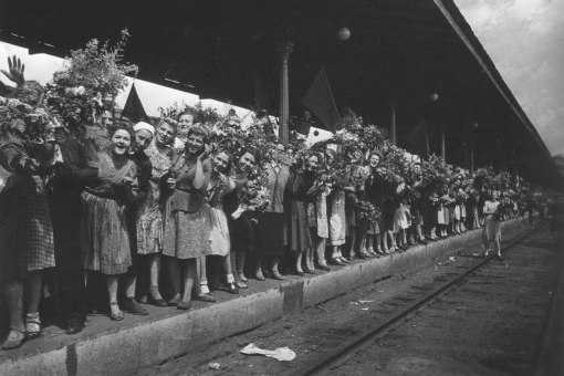 Из воспоминаний того времени: «Сегодня москвичи встречали на Белорусском вокзале первый эшелон демобилизованных воинов из Берлина. Такого количества цветов не видел даже на параде Победы. Когда поезд подходил к перрону, цветы подняли в приветствии кверху – площадь превратилась в цветущий луг! Встреча очень теплая – объятия, поцелуи, слезы. Какая радость после долгих лет войны вернуться победителем под родной кров».