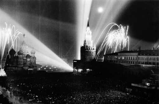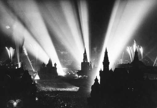 В 10 часов вечера 9 мая 1945 года над Москвой прогремел грандиозный салют: было произведено 30 залпов из тысячи зенитных орудий. Прожекторы войск ПВО подсвечивали небо, создавая праздничную иллюминацию.