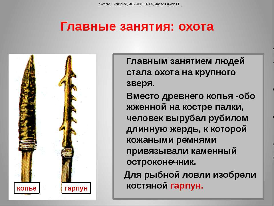 копьё, зазубренный метательный снаряд для охоты (как правило, на обитателей моря)