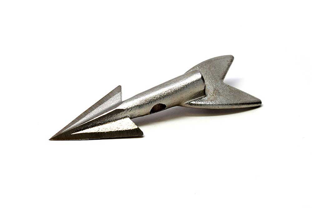 представляет собой металлическую стрелу, состоящую из штока и головки с четырьмя раскрывающимися лапами. На головку навинчивается граната, которая разрывается в теле животного.