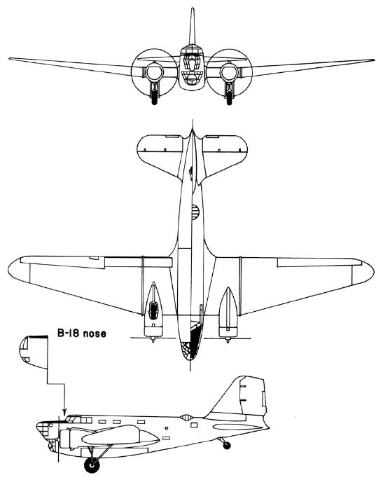 Компания Douglas сделала фюзеляж своего авиалайнера DC-2 более глубоким для размещения бомбового отсека, удлинила крылья и добавила носовую и подфюзеляжную турели. B-18 поступил на вооружение армии в 1937 году, а B-18 стал первым самолетом, приземлившимся на новые бетонные взлетно-посадочные полосы в Лоури Филд в 1940 году.