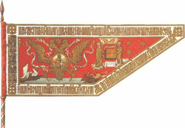 Готовясь ко второму Азовскому походу, Пётр I в 1696 году в лучших традициях предков изготовил знамя с центральной частью и откосом. Выполненное из красной тафты с изображением святых, оно было дополнено двуглавым орлом, держащим копья, увитые лентами, и морем с парусными кораблями. Но знамя «прожило» не долго по причине захлестнувшей Петра I эйфории по всему европейскому.