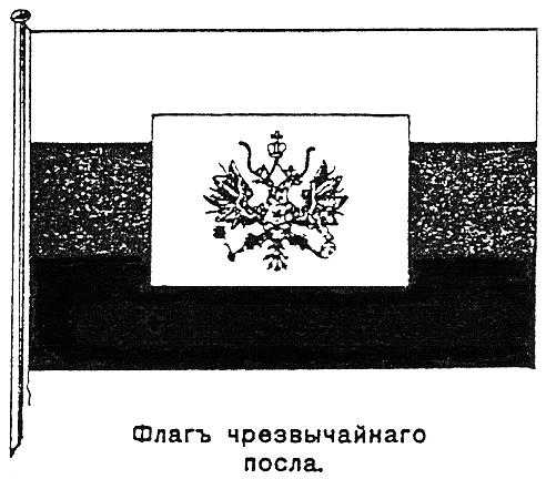 Государь император всемилостивейше разрешить соизволил употребление нового национального флага, символически изображающего единение Царя с народом. Рисунок нового флага представляет сочетание Царского штандарта с национальным флагом. Как и в нынешнем национальном флаге, здесь имеются три полосы: белая — вверху, синяя — посредине и красная — внизу. В углу, у древка, на желтом фоне, красуется черный государственный герб — двуглавый орел. Желтый фон покрывает около четверти синей и белой полос. Красная остается совершенно открытой.