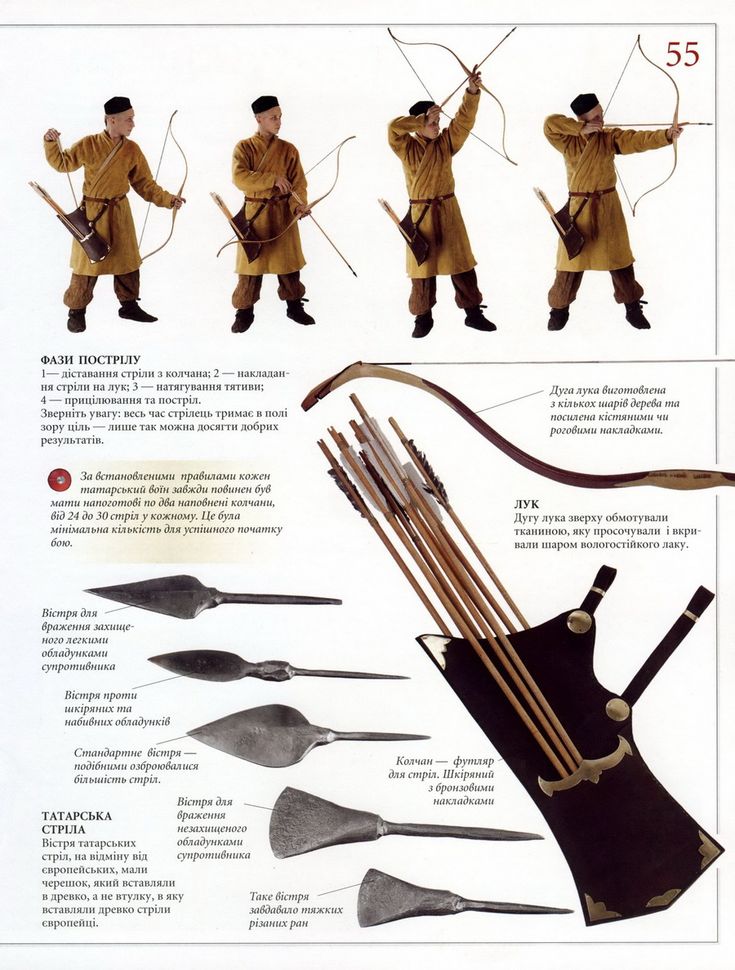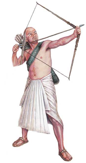 Появился усиленный лук, который повышал дальность полета стрелы и точность ее попадания. Стрелы имели наконечники различной формы и оперение; длина их колебалась от 55 до 100 см.