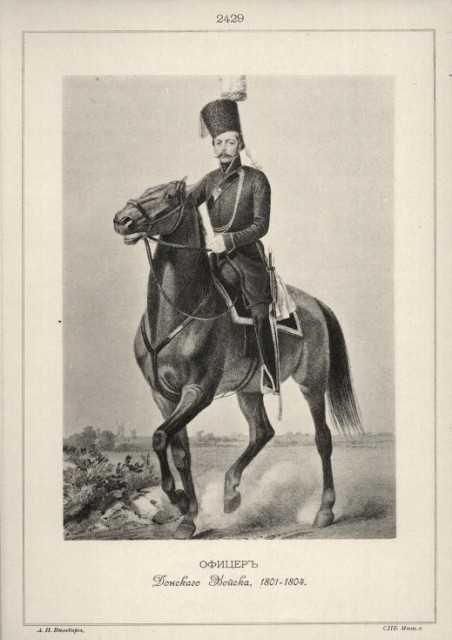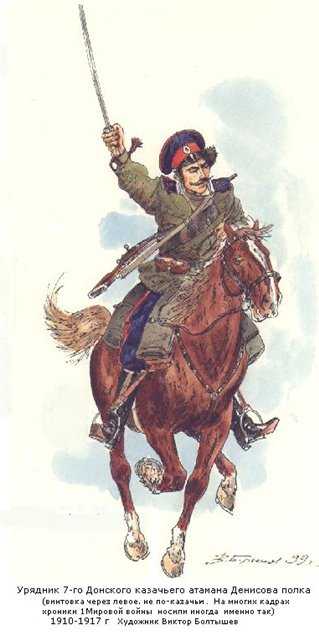 Эта весьма эффектная, помпезная военная форма больше подходила для красочных военных парадов, нежели для активных боевых действий. Неудобства новой формы сказывались в ходе Отечественной войны 1812 г. Искрометные в бою донцы так и не смогли к ней привыкнуть. Впрочем, она просуществовала недолго. В течение 19 в. форма постепенно совершенствовалась, и к началу первой мировой войны обмундирование казака состояло из гимнастерки, мундира, шаровар, сапог, шинели, фуражки, башлыка, папахи, пояса.