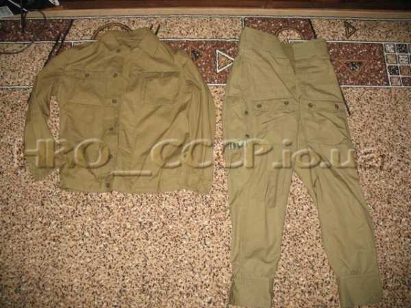 Скорее всего это вручную перекрашенный в камуфляж ОКЗК-Д — общевойсковой комплексный защитный костюм десантный. ОКЗК-Д шили из х/б ткани со специальной пропиткой, защищающей от радиации и отравляющих веществ. В дальнейшем на основе покроя ОКЗК-Д разработали форму-«афганку», но об этом ниже. ОКЗК-Д и такой же общевойсковой костюм ОКЗК-М, судя по всему, массово не носились, но на складах на случай войны были. Я встречал упоминание, что в них одевали ликвидаторов аварии на Чернобыльской АЭС, но этим вопросом не интересовался. Желающие могут поискать информацию сами.