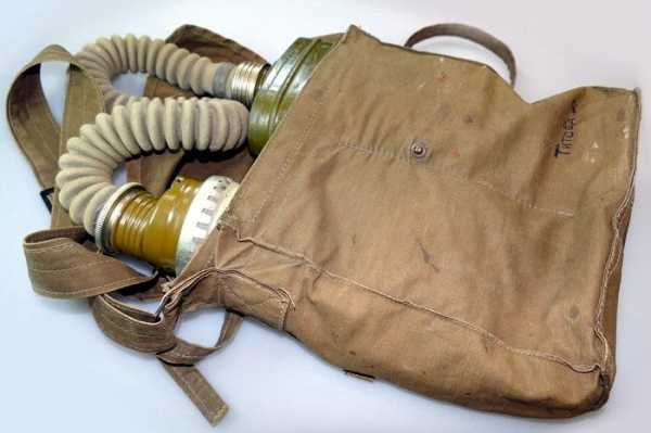 Противогазная сумка образца 1939 года. К 1945 году противогаз со снабжения бойцов Красной Армии никто не снимал. Однако четыре года войны прошли без химических атак, и солдаты пытались избавиться от «ненужного» предмета экипировки, сдавая его в обоз. Часто, несмотря на постоянный контроль командования, противогазы попросту выкидывали, а в противогазных сумках носили личные вещи.