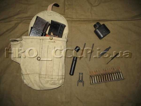 Сумка вмещала в себя три магазина, каждый из которых был рассчитан на 35 патронов. К каждому ППС-43 полагалось две таких сумки, но на фотографиях военного времени видно, что часто бойцы-автоматчики носили только одну. Связано это было с некоторым дефицитом магазинов – в боевых условиях они были расходным материалом и легко терялись.