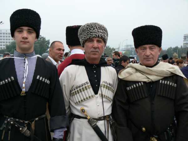 Русское название верхней мужской одежды — кафтана, которая была распространена в обиходе у многих народов Кавказа. Черкеску носили абазины, абхазы, адыги, балкарцы, грузины, ингуши, кабардинцы, карачаевцы, осетины, черкесы, чеченцы, народы Дагестана и другие. Газырь – зарядец, герметично закрываемый цилиндрический пенальчик, вместилище для заранее отмеренного порохового заряда или бумажного патрона. Часто газырь носился поверх черкески.