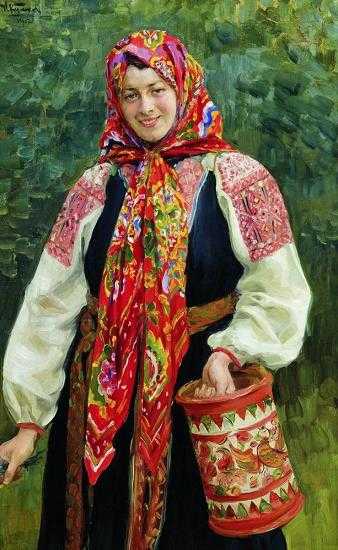 Следующий элемент одежды – передник или фартук, простой в будни, «диво дивное» в праздники. Воспетая Васнецовым и Суриковым телогрея, короткий, но с длинными рукавами жакет на меху или подкладке, с подсобранными складками на отрезной, завышенной талии. Запона (цельная девичья накидка, с вырезом для головы по центру), приволока (накидка без рукавов), жупан (холщевый обшитый кафтан) – вот самые характерные детали русского женского национального костюма. Особое место в наряде отводилось головному убору – самой красноречивой детали костюма. Кичка и сорока, кокошник и повойник – далеко неполный перечень головных уборов, способных рассказать о хозяйке все. Надо оговорить, что каждая губерния имела свои детали наряда, например, навершник или епанчики, всех не перечесть, но без которых был немыслим костюм народа этой территории. А русская обувь, особенно сапоги и лапти, достойны отдельной статьи.