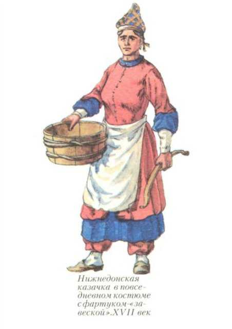 В южных районах преобладала понева. Другими словами — юбка, состоящая из трех полотнищ шерстяной или полушерстяной ткани, стянутых на талии плетеным узким пояском — гашником. Ее носили только замужние женщины. Молодая девушка после венца надевала поневу с «хвостом» из красного сукна, шелка, бахромы и даже с бубенцами. Понева же, которую носила молодая жена до рождения первого ребенка, была самая красивая. Фигура женщины в этой одежде казалась более приземистой, чем в сарафане. Да и вообще, деревенская одежда соответствовала укладу крестьянской жизни, а полнота женщины у крестьянки считалась признаком здоровья. Поверх всего вышеперечисленного надевали передник. Он был важной частью женского костюма и прикрывал место вынашивания и вскармливания ребенка, а также сердце — центр жизнедеятельности.