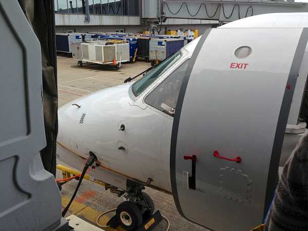 2. Внуковский перрон. Эмбаер этакий летающий карандаш — тонкий и длинный. За все время полета был только один неприятный момент — когда зашли в салон, то очень сильно несло запахом дезинфицирующей жидкости из сортира.