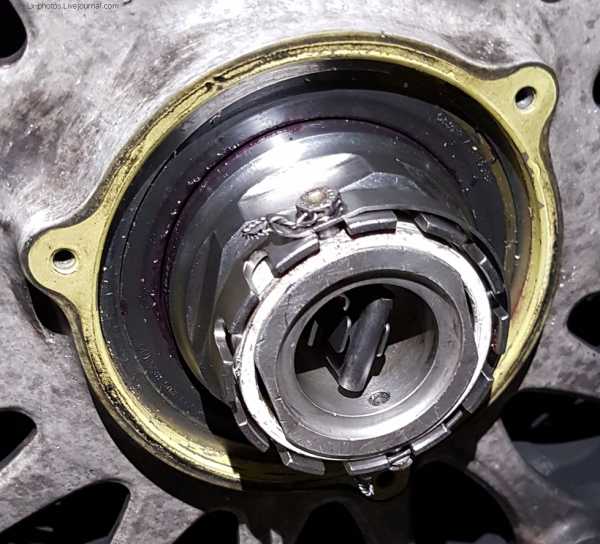 Надо вот эту пружинную скобу нацепить так, чтобы её бобышки вошли в отверстия на противоположных сторонах оси.
