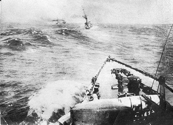 На этот раз прицел был точнее: торпеда ударила под боевую рубку, взрыв произвел детонацию носового артиллерийского погреба. В небо взлетел столб дыма и пара — крейсер разломился пополам и затонул за 15 секунд. Человеческие жертвы дисциплинарного разгильдяйства оказались ужасны: было убито, погибло от ран и утонуло 87 человек, 9 офицеров и 113 нижних чинов были ранены.