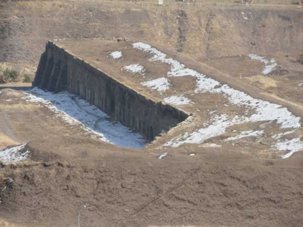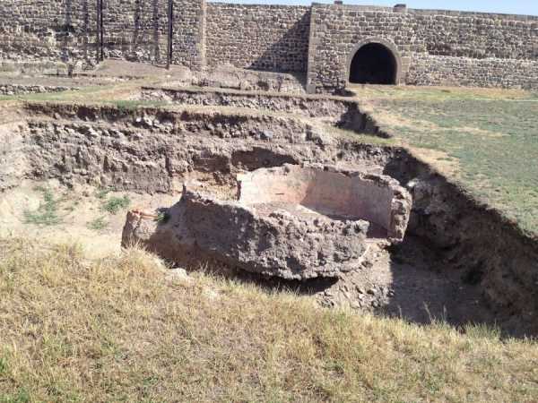 Фото внутри крепости — видно, что велись раскопки, территория завалена грунтом, судя по высоте арки — примерно на 1-1,5 м: