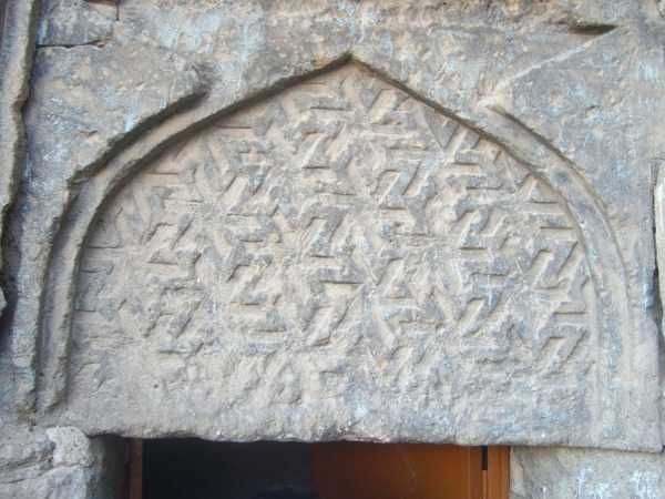 Обратите внимание на интересный срез угла в нижней части — зачем так? А верхний слой над аркой — явно похож на современную халтуру.