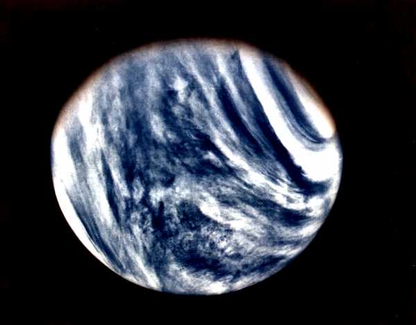 Искусственный цвет облаков Венеры, запечатленный на камеру Венеры-Экспресс.