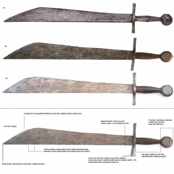 Эварт Ошкотт относит все эти три фальшиона ко второй разновидности данного вида холодного оружия.