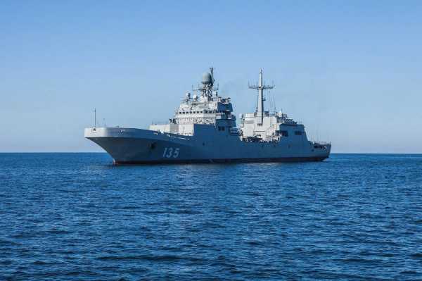 Водоизмещение – 5 000 т, скорость хода – 18 уз., дальность – 3 500 миль, вооружение – 2*АК-630М, 1*АК-630М-2 «Дуэт», два вертолета. Десантовместимость – 13 основных боевых танков массой до 60 т, или до 36 БТР/БМП и 300 десантников.