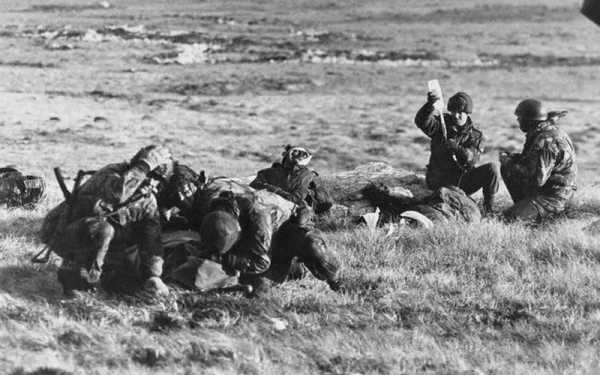 Британские парашютисты охраняют пленных аргентинцев. Порт-Стэнли, 17 июня 1982В ночь на 12 июня 3-я бригада морской пехоты пошла в атаку на занятые аргентинцами высоты Маунт-Гарриет, Ту-Систерз и Маунт-Лонгдон. К утру все высоты были заняты, хотя не во всех случаях это оказалось легко. В ночь на 14 июня наступил черёд 5-й пехотной бригады. Её целями были высоты Маунт-Тамблдаун, Уайрлесс-Ридж и Маунт-Уильям. Несмотря на недостаточную подготовку, Уэльские и Шотландские стрелки выполнили свои задачи, а батальону гуркхов даже не пришлось вступить в бой.