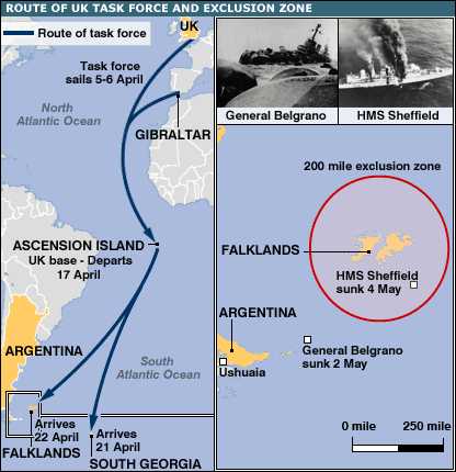 - ↑ Sir Lawrence Freedman. The Official History of the Falklands Campaign, Vol. II, p. 493.