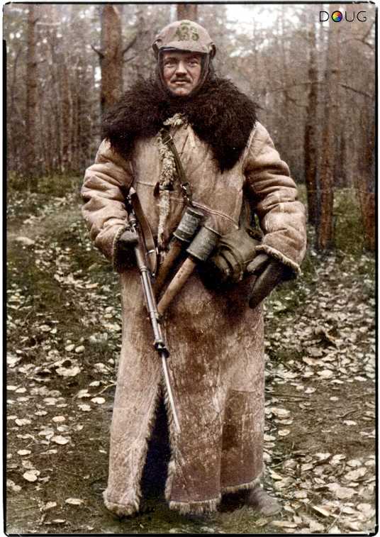 России) небольшими партиями. Русские солдаты использовали также трофейные немецкие и австрийские каски (данное утверждение справедливо для периода Гражданской войны. — Прим. ред.).