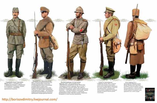 Снаряжение и форма русской пехоты мало изменились в период с 1914 по 1917 г. (за несколькими довольно значительными исключениями), чего нельзя сказать о первых годах XX столетия. Отчасти благодаря царившему тогда в Европе духу реформ, а отчасти — и личному интересу императора к военной форме, задолго до начала войны в августе