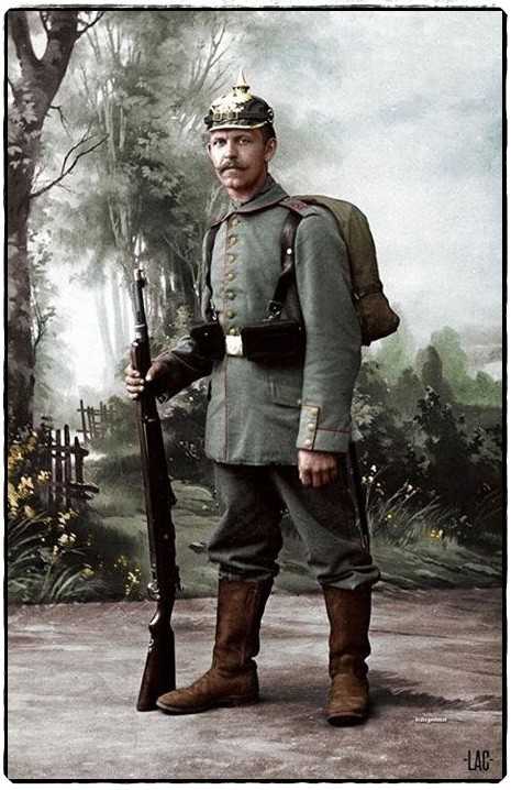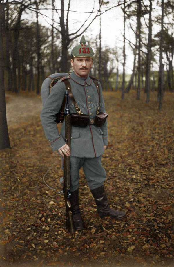 Форма цвета фельдграу была принята германской пехотой в 1910 г. Благодаря этому пехотинцы получили практичное и неподдающееся износу обмундирование, которое не претерпело радикальных изменений до 1918 г.
