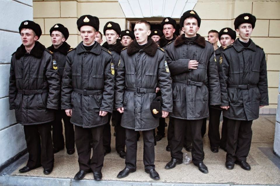 Форма ВМФ России включает несколько головных уборов. Это может быть бескозырная фуражка с лентами, на которых обозначено название корабля, либо простая надпись: «Военно-морской флот». На тулье бескозырки размещена кокарда в виде золотого якоря. Во времена Советского Союза кокарда была сделана в виде краба — красная звезда, обрамлённая золотыми листьями. Летняя фуражка шьётся из белой ткани и всегда идёт в комплекте с запасным чехлом. Зимой матросы ВМФ носят шапки-ушанки, сшитые из чёрного меха. Как выглядит в наше время зимняя форма ВМФ? Фото ниже демонстрирует ее внешний вид.