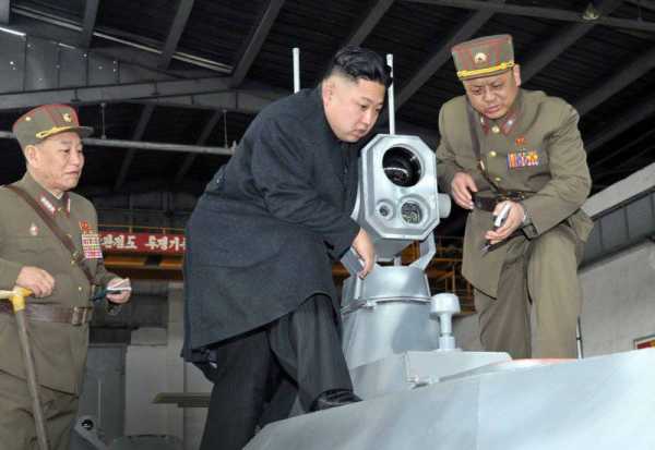 Ким Чен Ын смотрит на боевое оборудование, разработанное на объекте 1501 Корейской народной армии, 24 марта 2013. (© Reuters/KCNA)