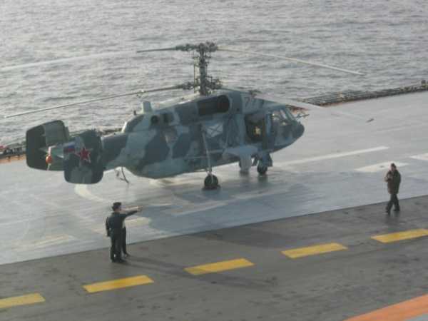 Тяжелый авианесущий крейсер «Адмирал флота Советского Союза Кузнецов» и корабельный вертолет Ка-29 в Средиземном море © Андрей Лузик/пресс-служба Северного флота/ТАСС