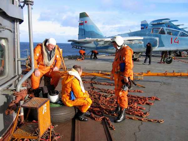 Авиатехники на палубе тяжелого авианесущего крейсера «Адмирал флота Советского Союза Кузнецов»