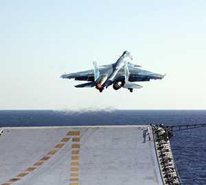 Первую в истории советского ВМФ горизонтальную посадку на корабль совершил 1 ноября 1989 г. летчик-испытатель Герой Советского Союза Виктор Пугачев на самолете Су-27К.