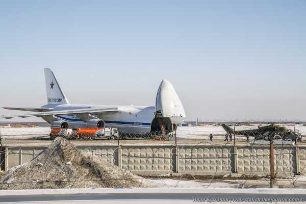 Вот его буксируют на территорию военной базы, дислоцирующейся в Толмачево.